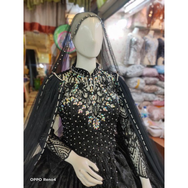 Gaun pengantin warna hitam mempesona / pakaian pengantin warna hitam.